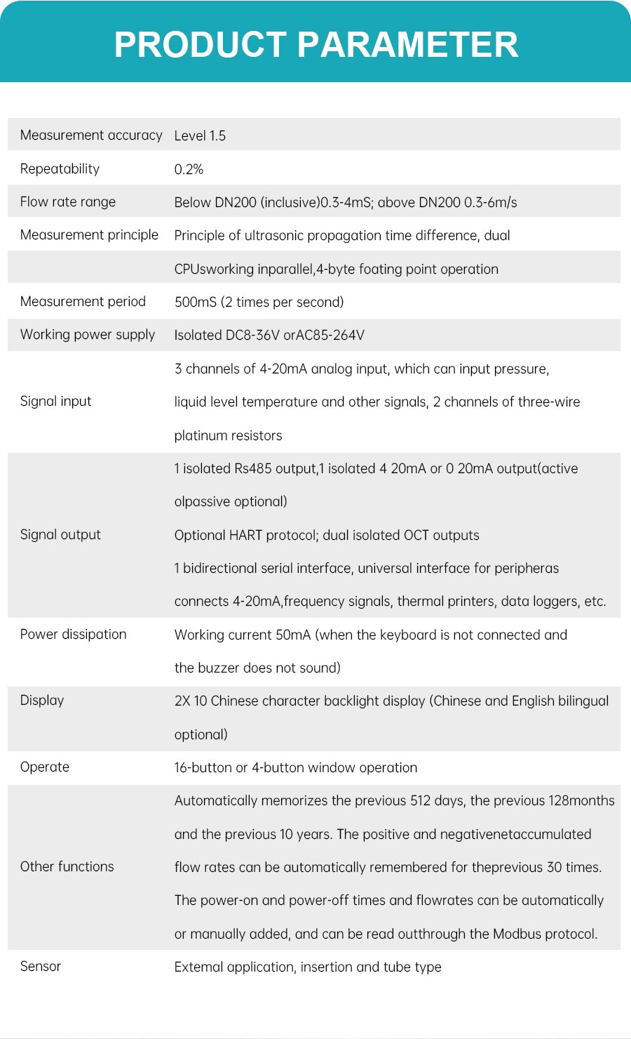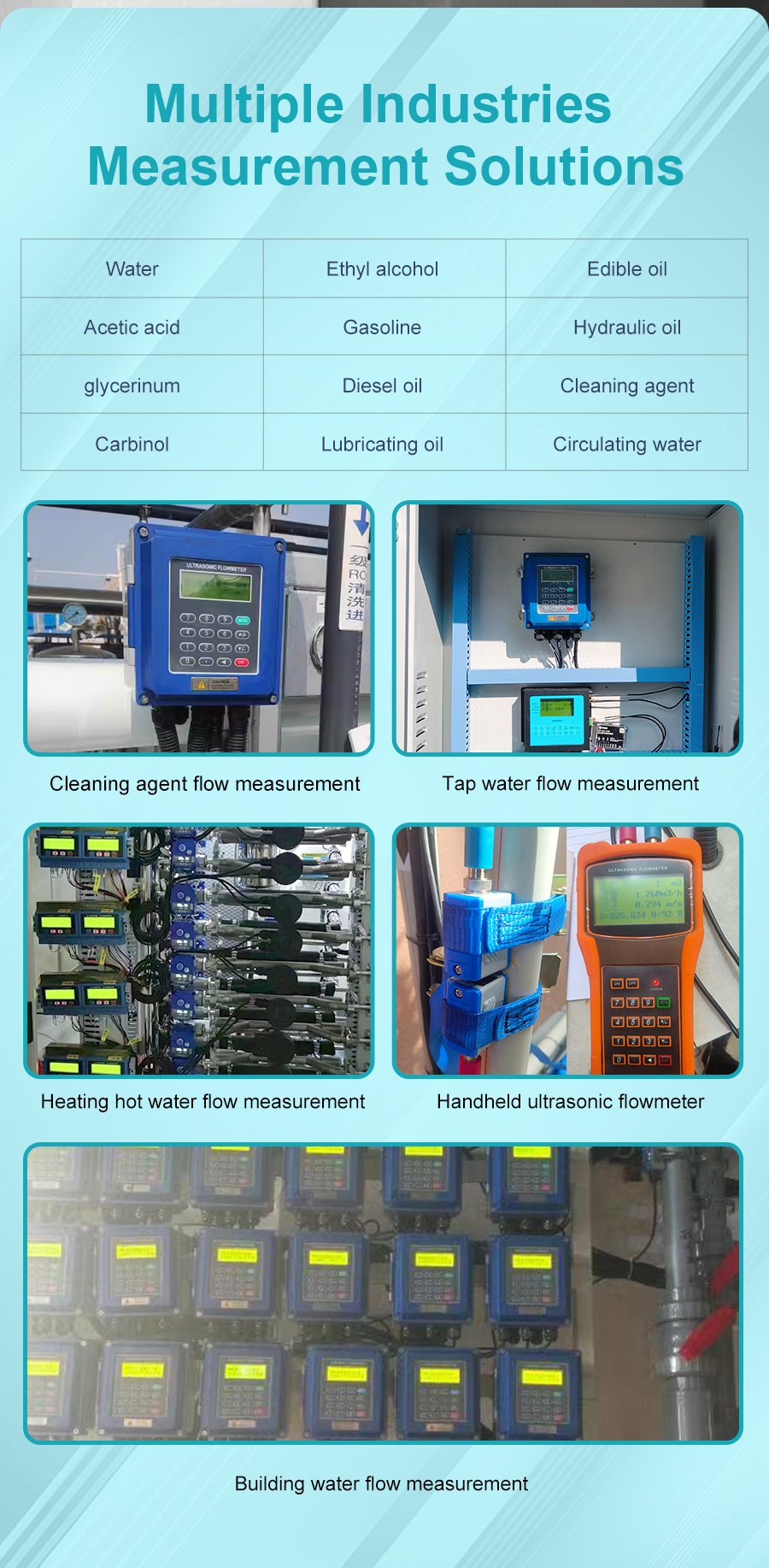 We have products like oval gear flow meter, turbine flow meter, electromagnetic flow meter, vortex flow meter, mass flow meter, ultrasonic flow meter, radar level meter, precession vortex flow meter, etc.