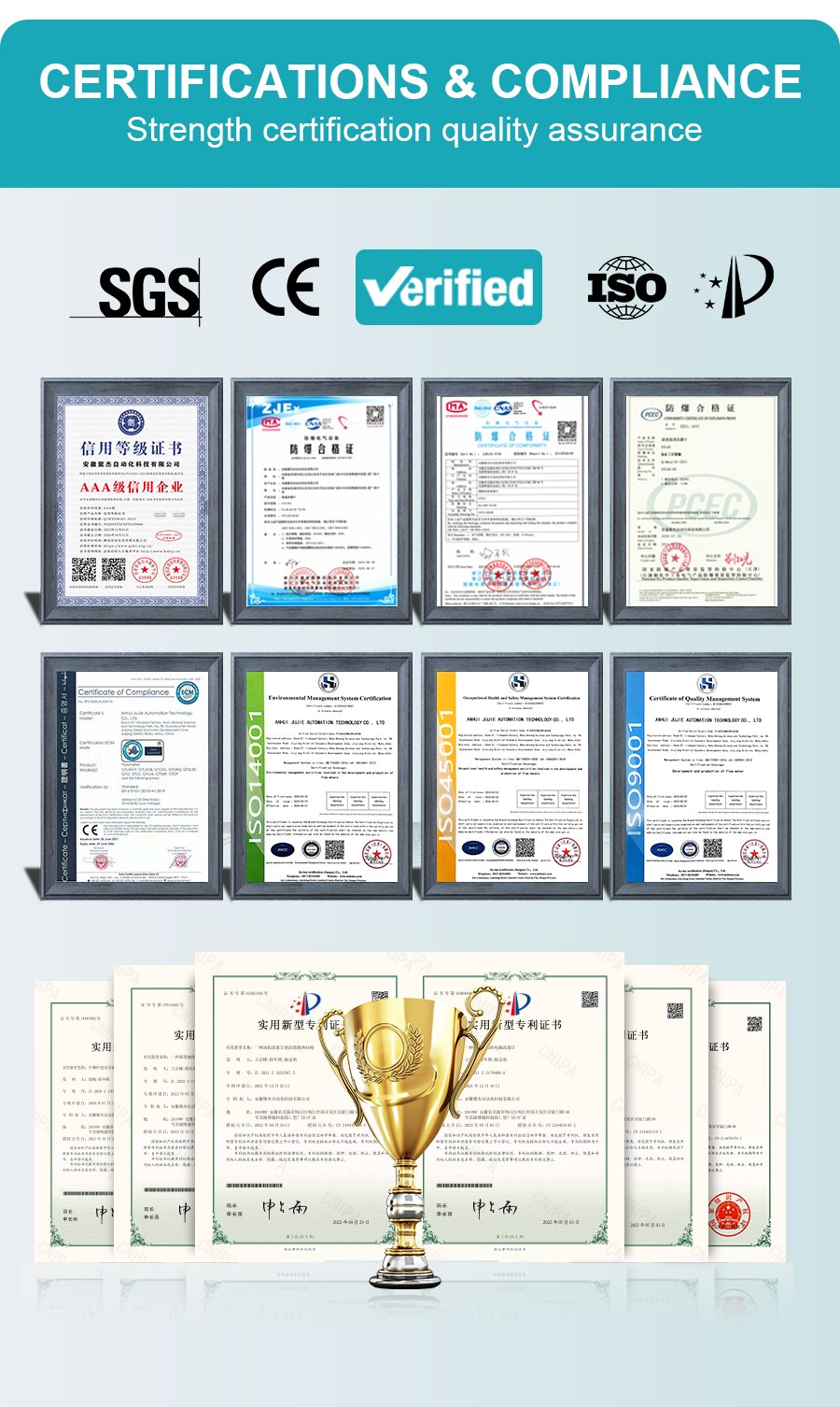 All the flow meter and sensor have passed the national quality inspection and obtained ISO certification for quality management system certification, CE certificate, high-tech enterprise certificate, calibration certificate and all the products will be verified as qualified before shipment.