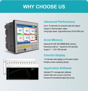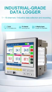 GT71R Data Logger – High-integration color touchscreen design with 1-16channel analog input,1-4 channels of 4-20mA output, and 1-6 relay outputs. Features 1-6 channels of24VDC power supply for sensors.It provides two communication interfaces: RS232C and RS485. The RS232C interface can be directly connected to the micro printer and supports power-off protection and clock protection. Ideal for process monitoring & data logging in petrochemical, food processing, environmental protection, and medical industries. Enhances smart manufacturing & energy management efficiency